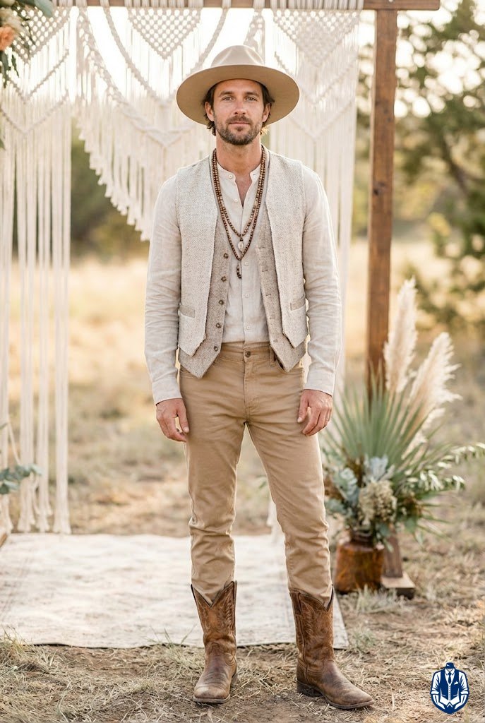 40. Boho Western Groom Outfit With Layers