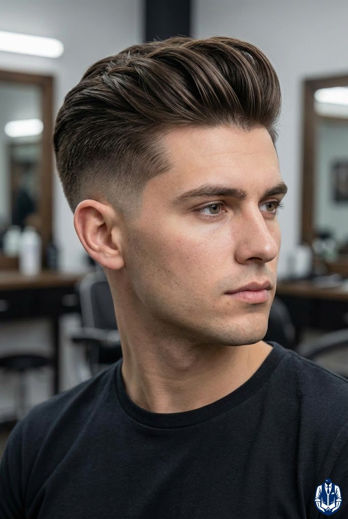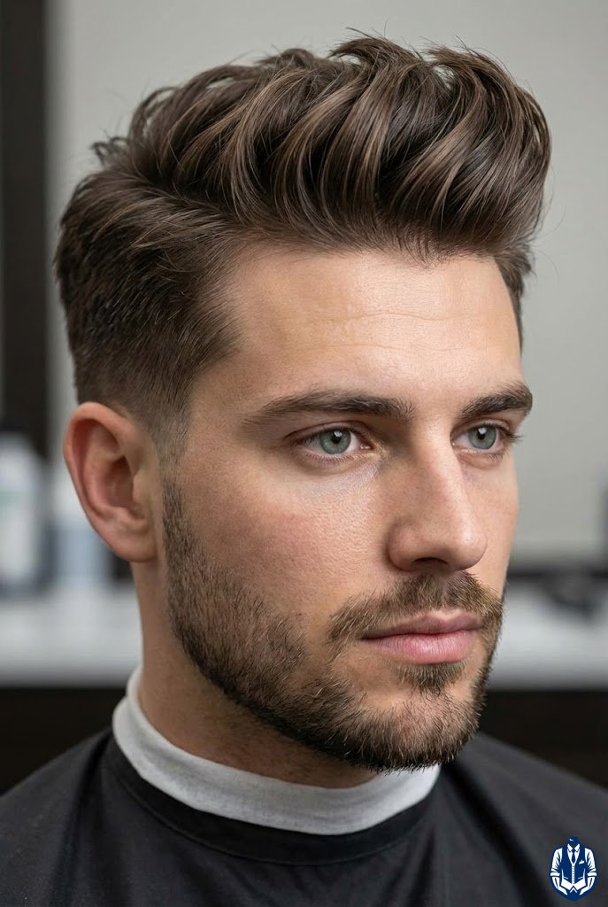 This is where high-fashion meets high-standard grooming for the modern man. The sharp sides create a dramatic contrast with the lifted top, making it a true standout gentleman haircut.