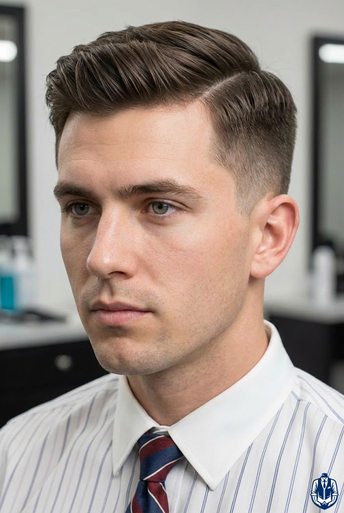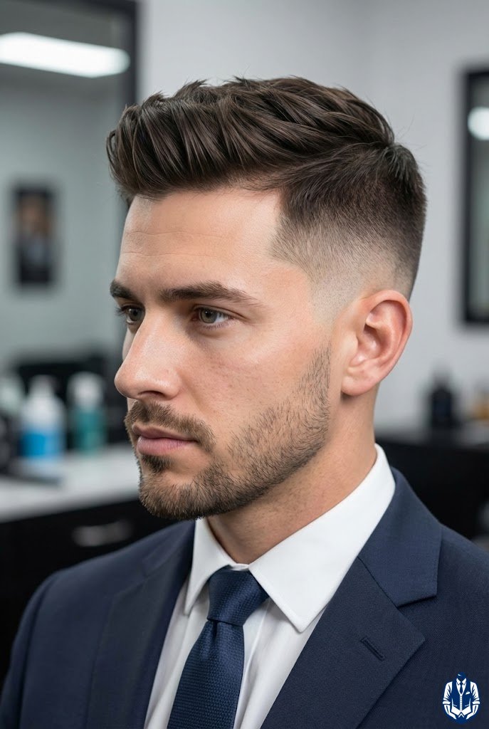 Pro Tip: A “drop fade” can add a unique, modern touch to this classic office-ready look.