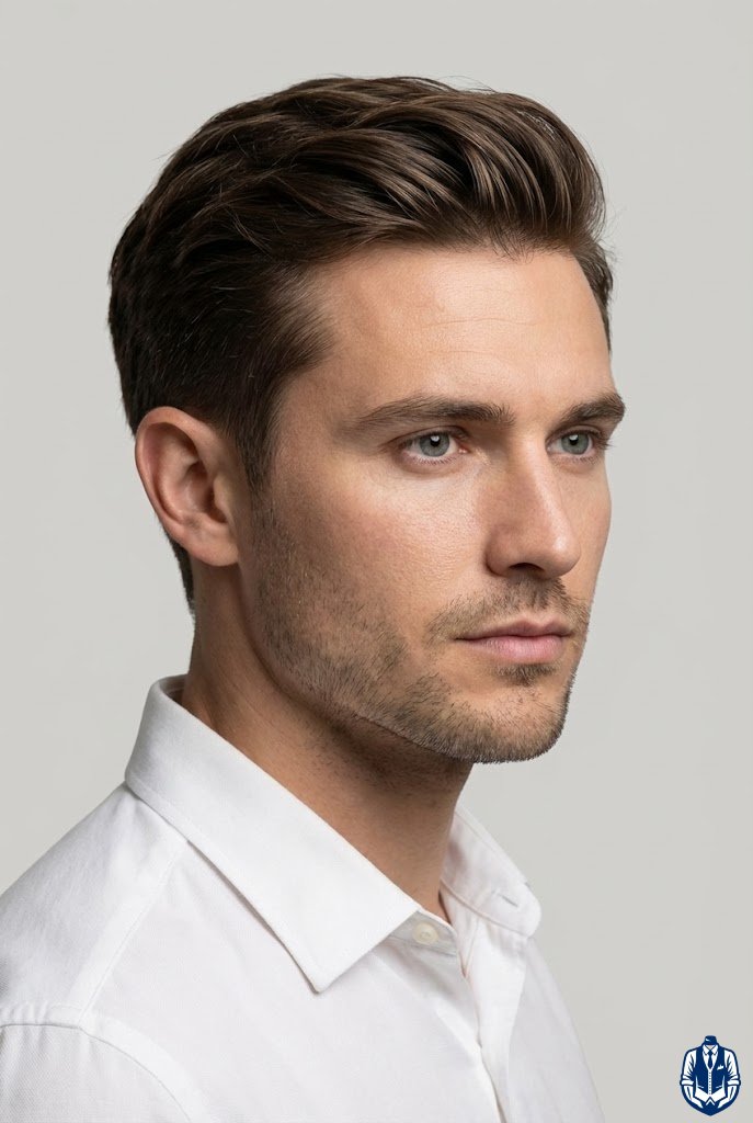 For the busy man who still wants to look his best without spending thirty minutes in the mirror. This gentleman haircut provides a clean shape that requires almost no styling effort.