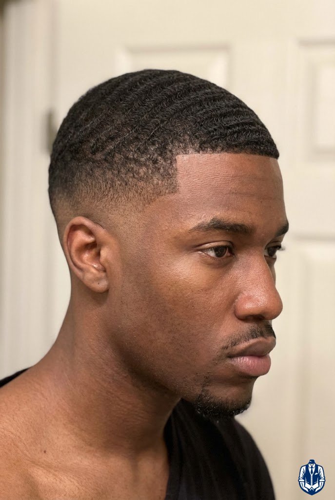 Brush the top into tight 360 waves while keeping the sides and back faded. This look combines wave culture with a sharp afro fade haircut finish.