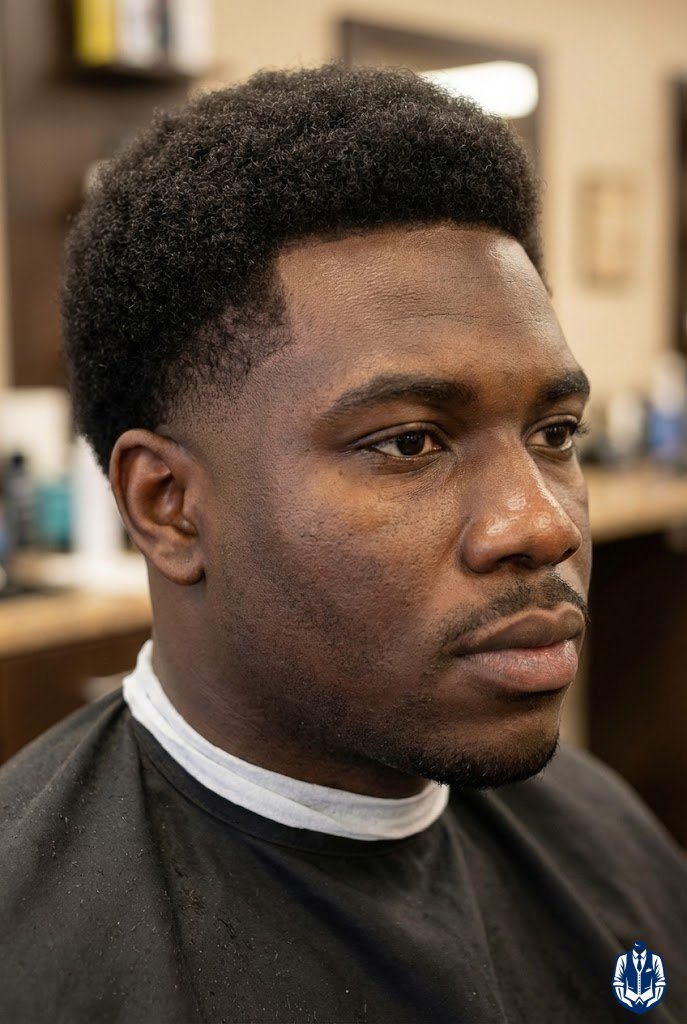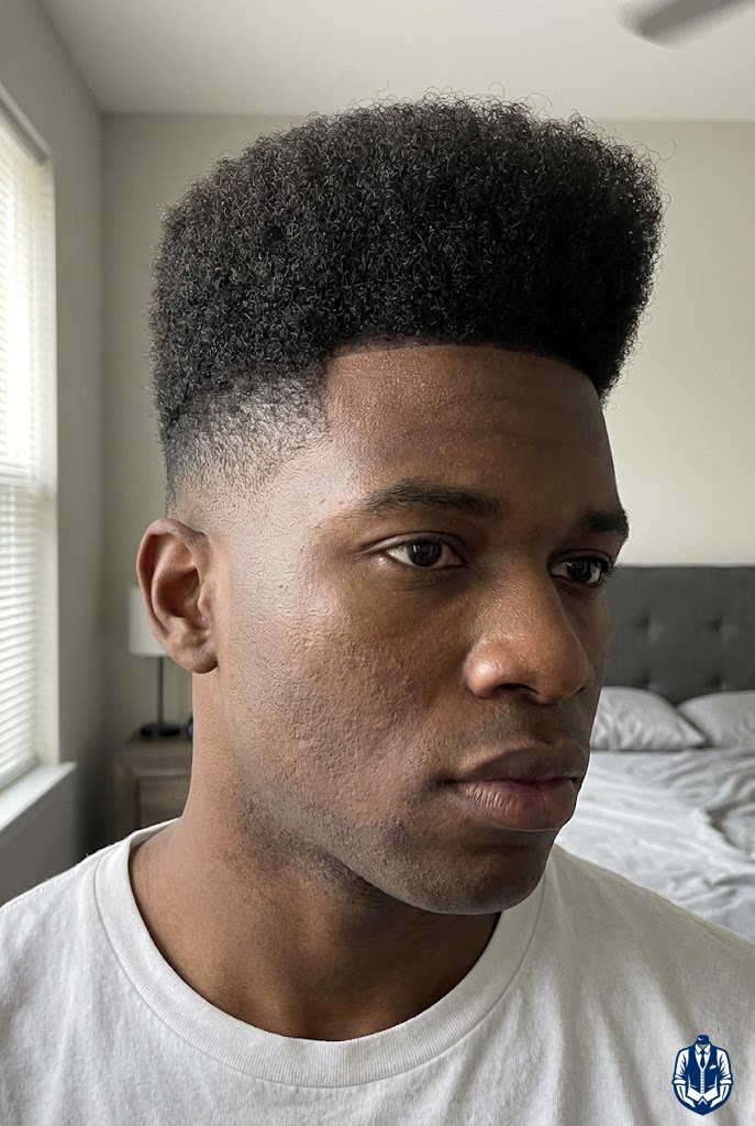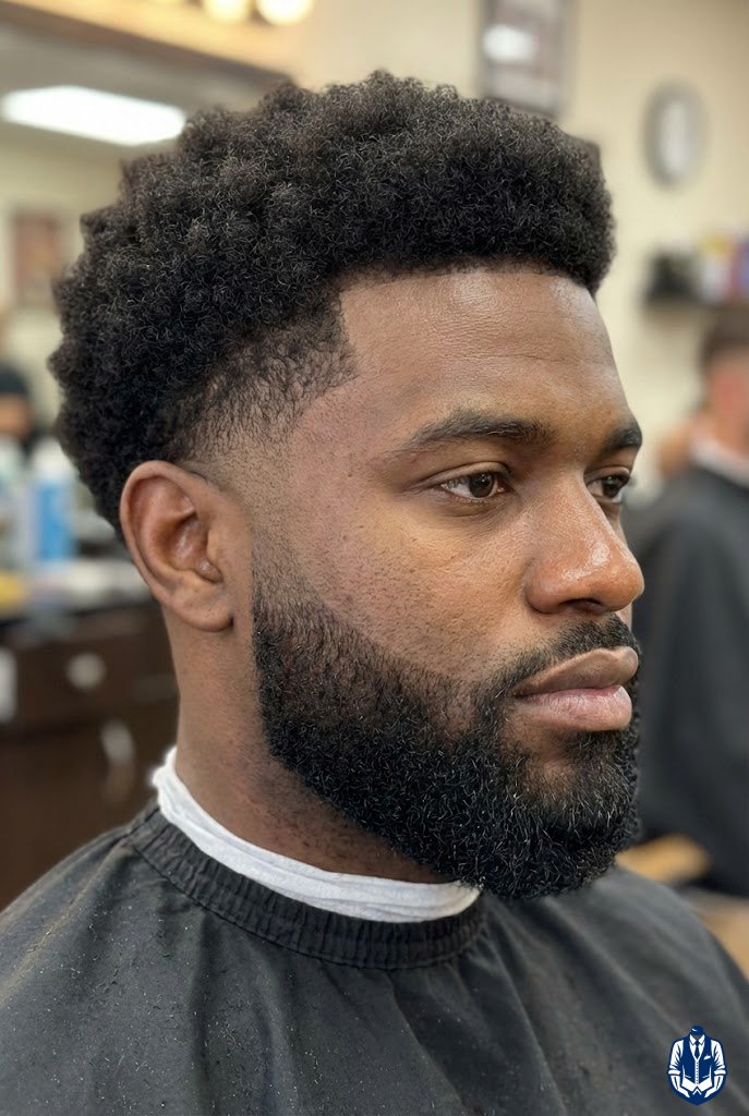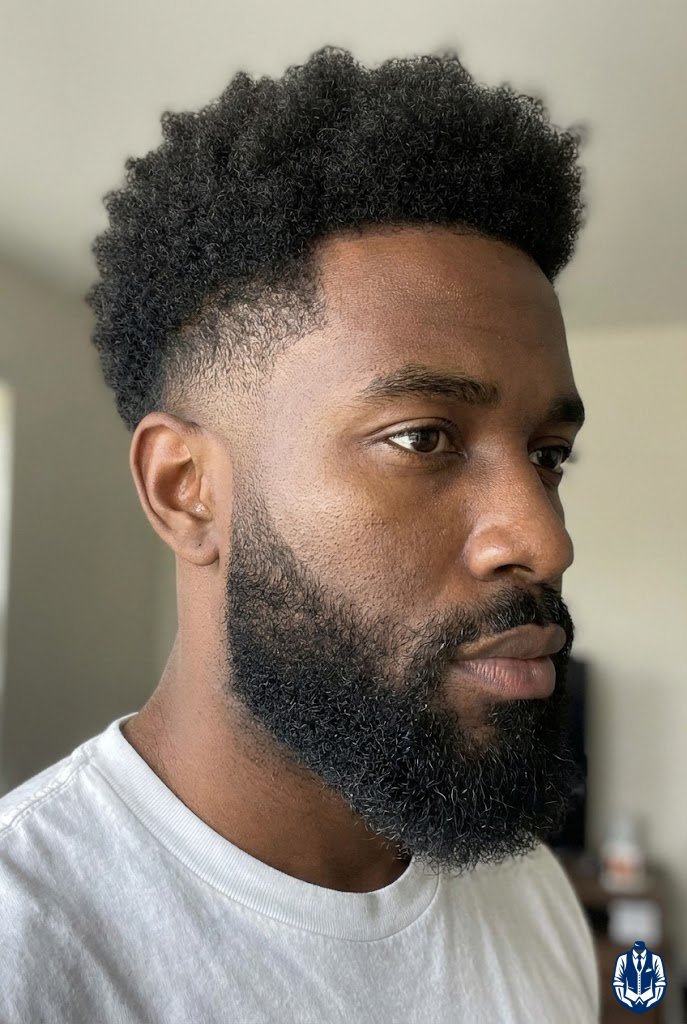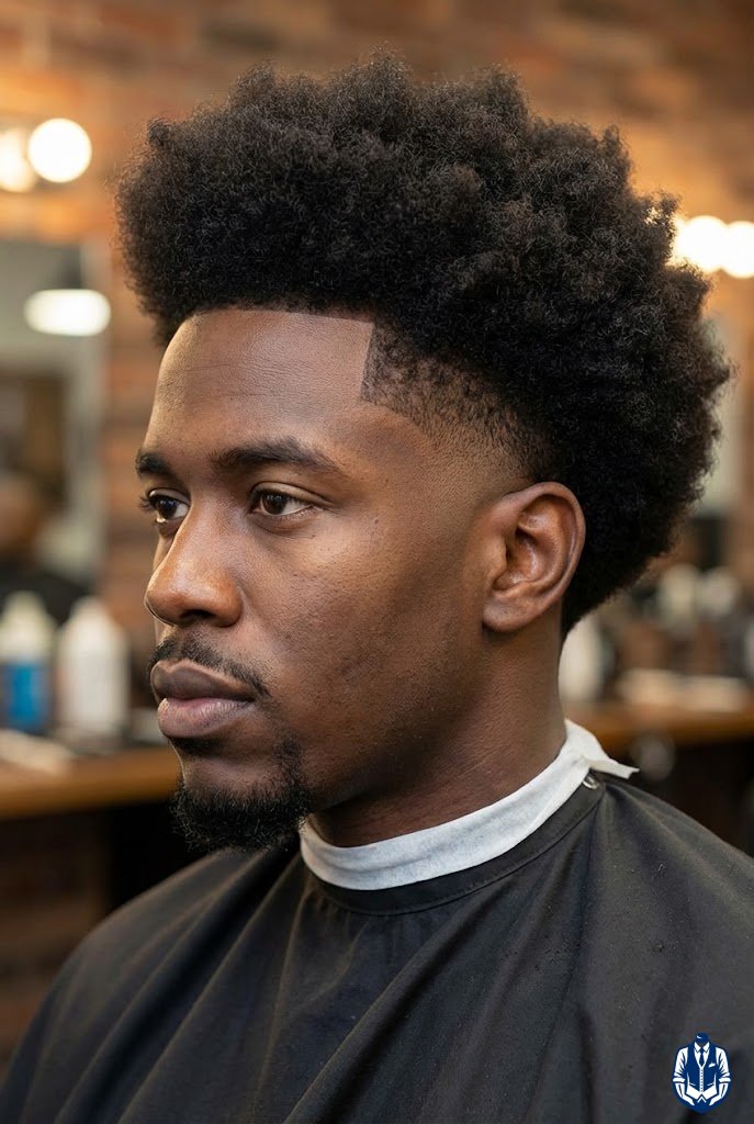 This timeless look combines a traditional rounded afro on top with clean, faded sides. It focuses on maintaining your natural volume while ensuring the edges look neat and modern.