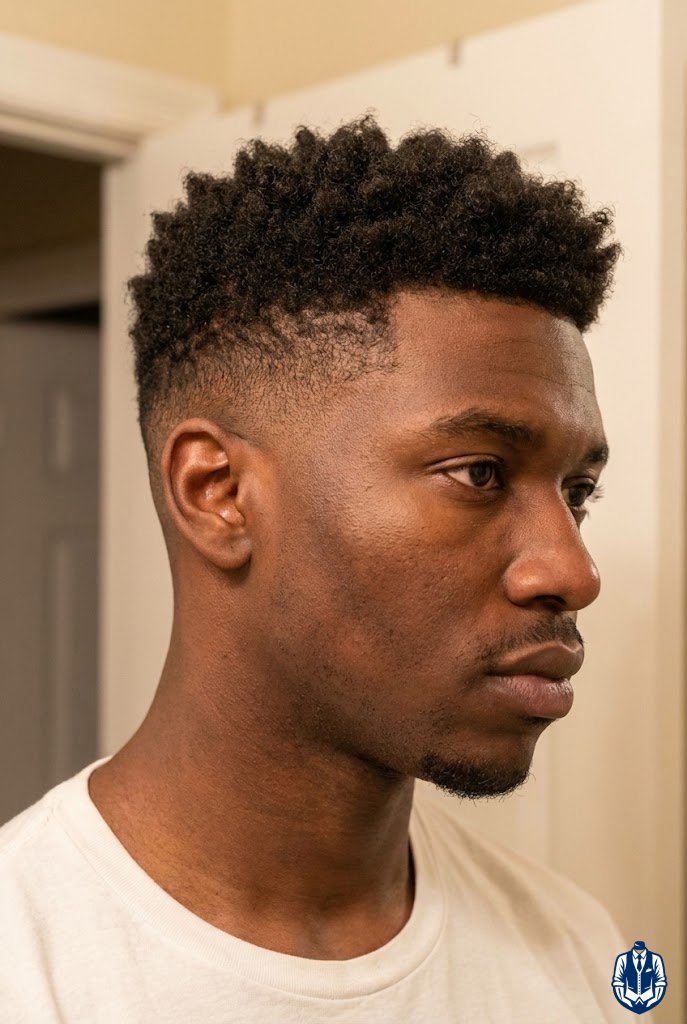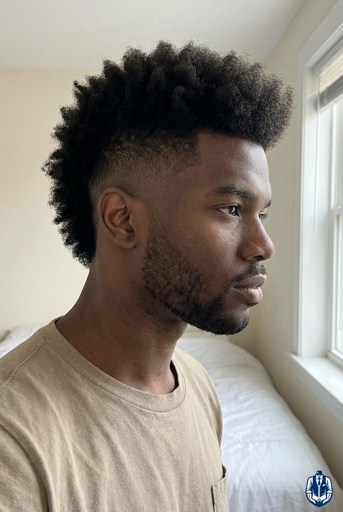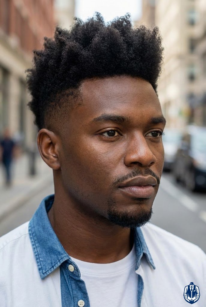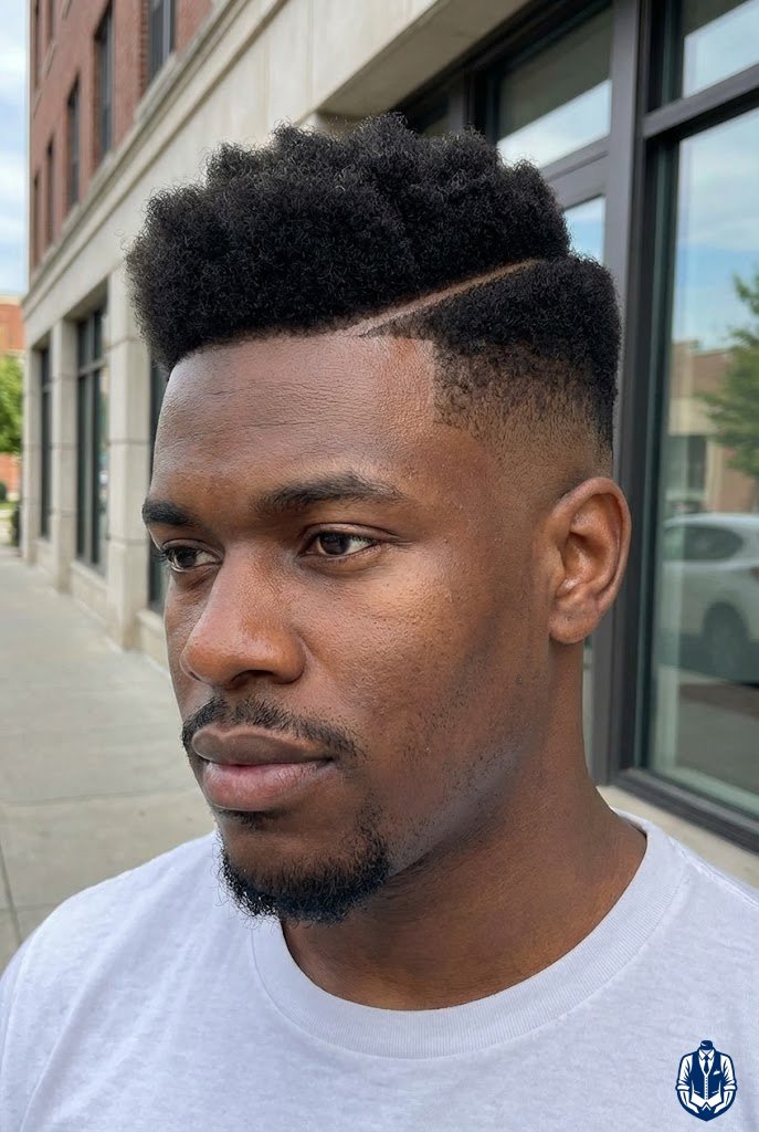 Style your afro hair upward toward the center without fully shaving the sides down. The fade adds structure while keeping the look wearable and versatile.