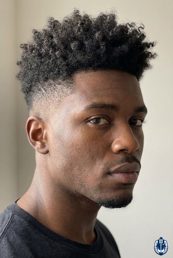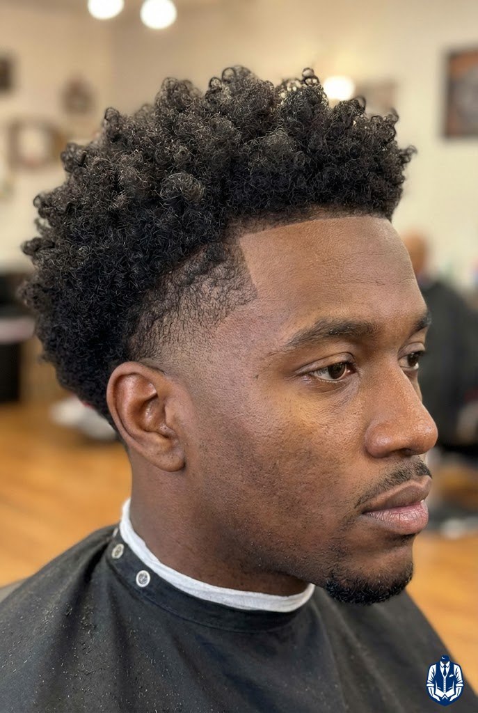 Keep your natural curls longer on top while the sides get faded high and tight. The contrast highlights your curl texture and gives the haircut a fresh, youthful energy.
