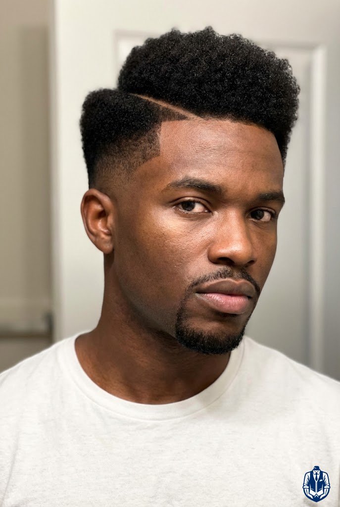 Use a deep, shaved part to separate the afro top from the faded side. This adds structure and a sharp visual break to the haircut.