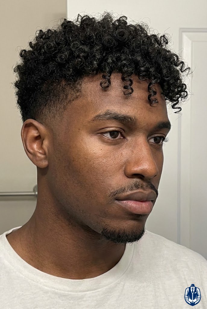 Let loose curls fall slightly forward at the front while the sides feature a low taper. This style feels relaxed, modern, and youthful.